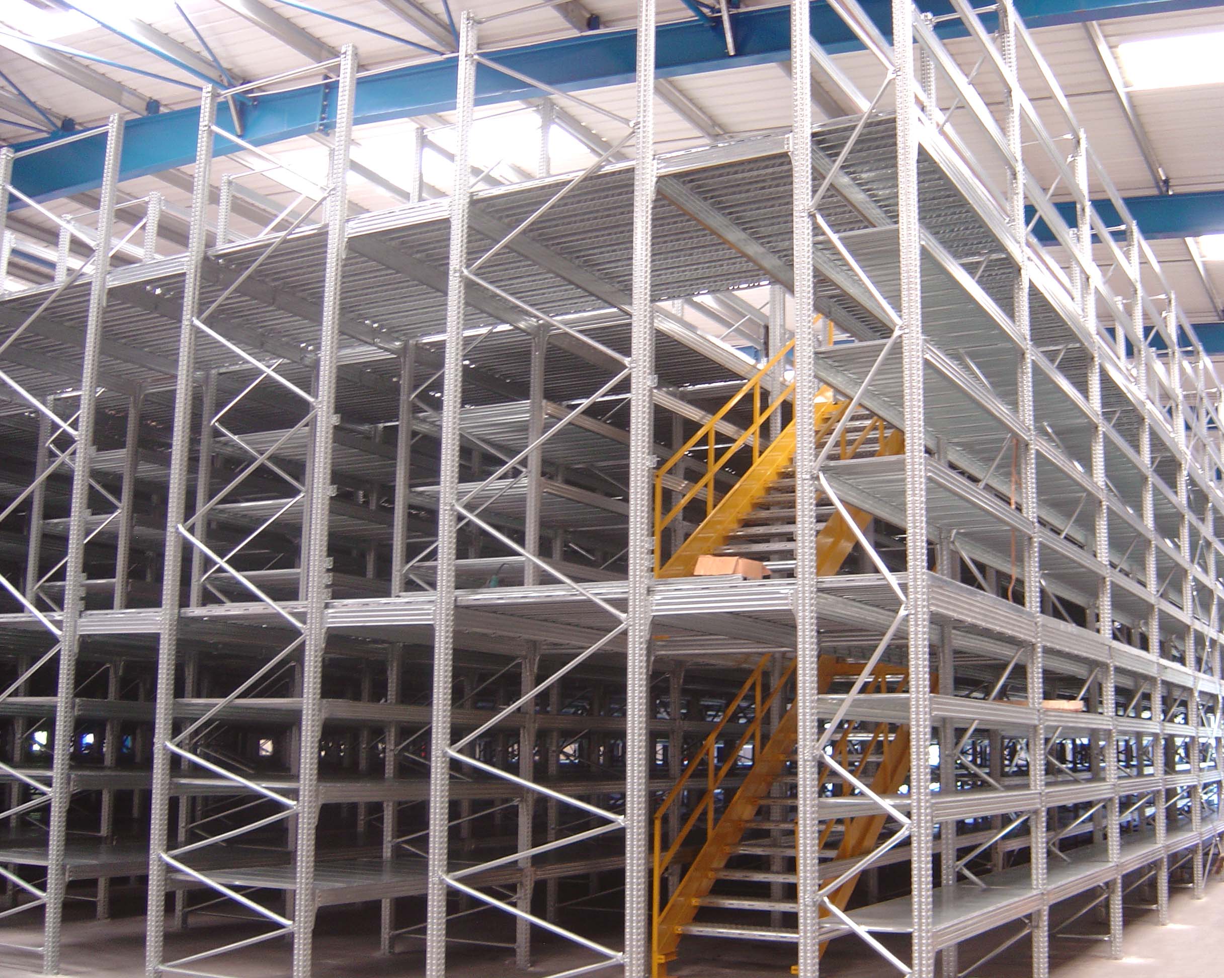 Sistemele de rafturi Mezannine sunt produse uzuale in gama noastra, intrucat avem stalpi de raft care au posibilitatea de a se conecta cu cate 2 grinzi pe fiecare latura a patratului sectiunii.